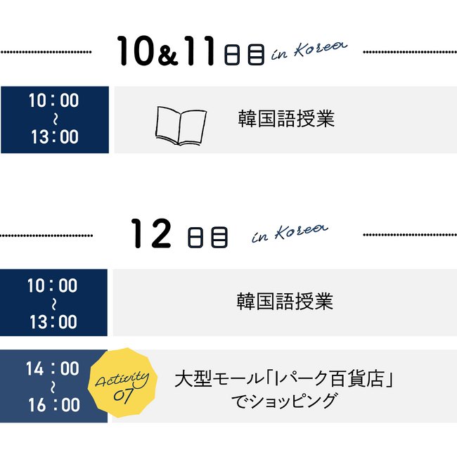 本プログラムでは、勉強・グルメ・エンターテインメント・お買い物など韓国を満喫するすべての要素を詰め込んでおり、濃厚な2週間を過ごすことが可能です。