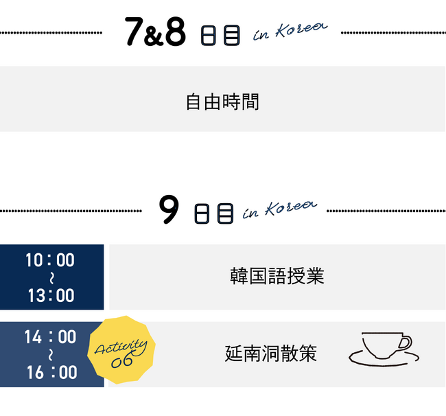 韓国は日本から近く時差はないため、比較的気軽に海外へ挑戦していただける国となっております。今回のプログラムを経て、学生のうちに海外への関心・理解を深めていただくとともに、人生における貴重な経験を過ごしていただきたいと考えております。