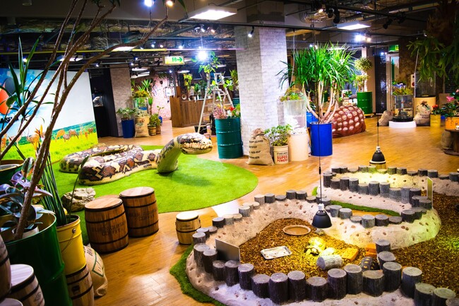 ふれあい:「いきものと同じ目線でふれる・感じる・体験する ミュージアム」をコンセプトに、レプタイル(爬虫類)を 中心に魚類・両生類などの様々ないきもの達と0距離 で目線を合わせられる。