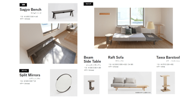 ウェブサイトから閲覧できるmui haus.のVRには、家具ブランド「Ariake」の家具が配置されています。Ariakeは、家具の町である佐賀県諸富町のレグナテックと平田椅子製作所、二社が立ち上げたブランドです。伊藤維氏は、「自分の体で感じられるものとの関係性をもう一度繋ぎ直したい」という思いに対して、建築だけではなく家具という視点からも工夫を施しています。