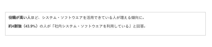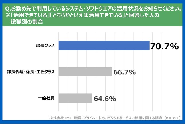 役職が高い人ほど、システム・ソフトウエアを活用できている人が増える傾向に。