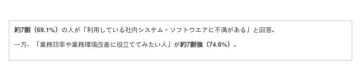 約7割(69.1%)の人が「利用している社内システム・ソフトウエアに不満がある」と回答。