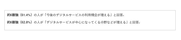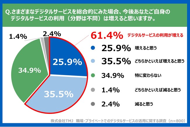 約6割強(61.4%)の人が「今後のデジタルサービスの利用機会が増える」と回答。