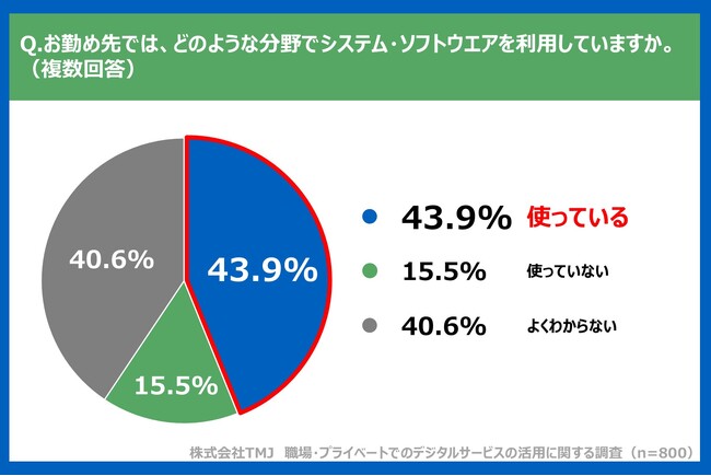 約4割強(43.9%)の人が「社内システム・ソフトウエアを利用している」と回答。
