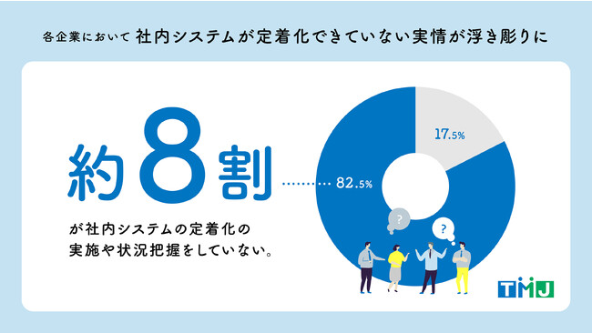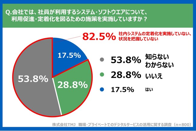 約8割(82.5%)の人が「社内システムの定着化を実施していない、状況を把握していない」。