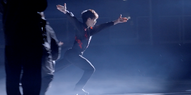 撮影現場はとても寒く、3選手それぞれ念入りにウォーミングアップを実施。練習や大会とは異なる真っ暗な環境に、三浦佳生選手は「真っ暗の氷上で演技するのは難しい部分もあった」と戸惑いを見せつつも、いざ撮影が始まると不安を全く感じさせない力強い演技を披露。撮影の合間には、選手同士が談笑する姿も見られ、仲睦まじい姿も垣間見えました。また、住吉りをん選手は、カメラマンがステップやジャンプを至近距離から撮影するのもとても新鮮だったとのことで、「臨場感のある映像になっていると思うので是非注目してもらいたい。」と語り、鍵山優真選手は氷上ならではのこだわった演出に「すごく良い映像ができていると思う。」と自信を見せました。