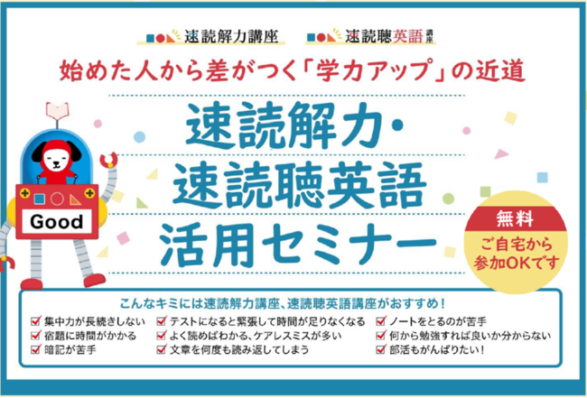 ICT学習教材の企画・開発を行なう株式会社SRJ(本社:東京都中央区、代表:堀川直人)は、この夏、全国約3,600教室の学習塾で開講している「速読解力講座」「速読聴英語講座」において、全国の会員塾と子どもたちを繋ぐために、自社主催の無料オンラインセミナーを開催いたします。