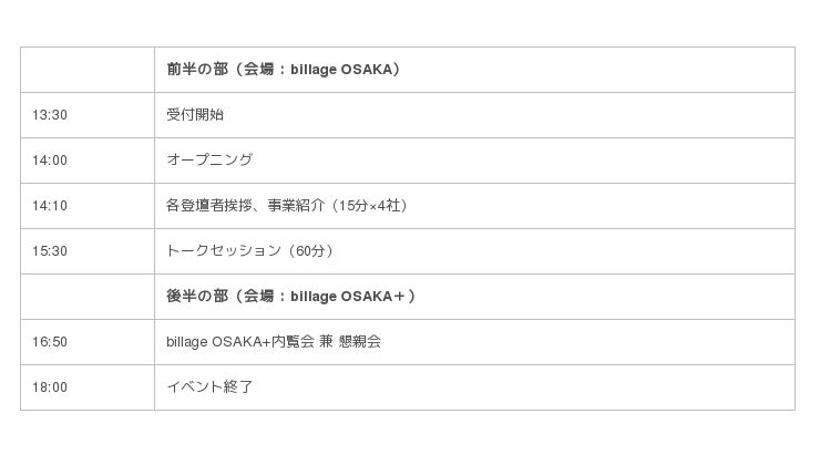 コワーキングスペース・インキュベーション施設の企画・運営を行う株式会社MJE(本社:大阪市中央区、代表取締役:大知昌幸)は、billage OSAKAで開催される記念イベントの内容を公開しました。4月13日はスタートアップ支援がテーマのトークセッションを実施。