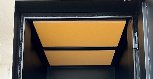 本体の内側上部にシートを貼ることで、天面部にあたる雨音を軽減させます。