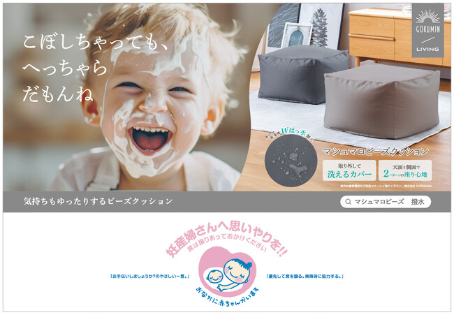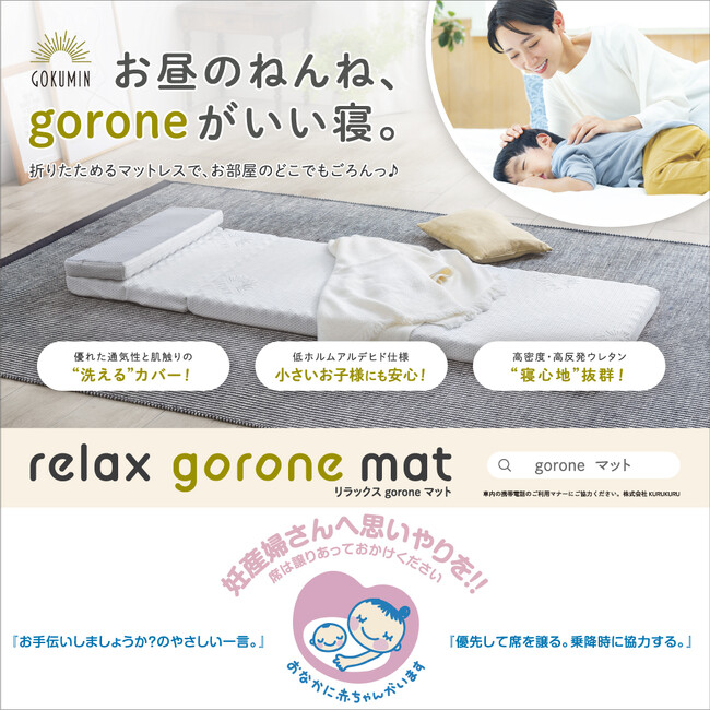 株式会社KURUKURU(本社:東京都中央区銀座、代表取締役:関沢康寛)の寝具ブランド「GOKUMIN」は、厚生労働省が推進する妊産婦さんの優しい環境づくりをサポートする「マタニティマーク」の普及活動に賛同し、2023年10月から1年間、都営地下鉄3路線(大江戸線・三田線・浅草線)の優先席エリアにタイアップ広告を掲出いたします。