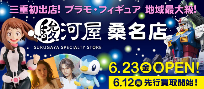 6月12日(月)は買取のみのプレオープン、そして6月23日(金)はセール&買取のグランドオープン!ホビーアイテムのお買物、ご不要になったおもちゃを売るなら「駿河屋桑名店」へ!