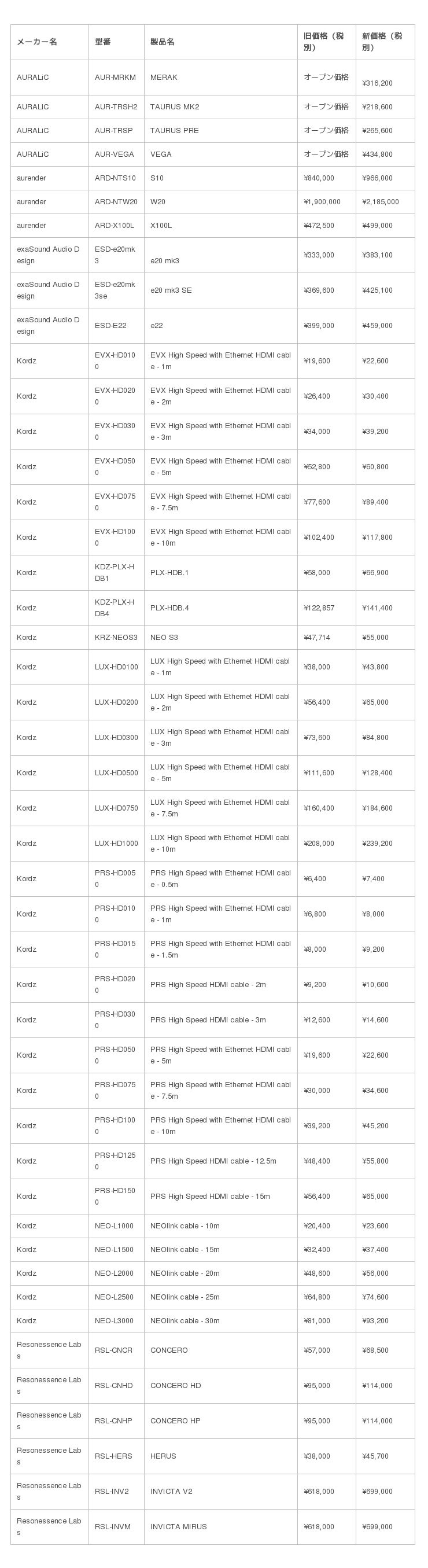 ※AURALiC社製品については,オープン価格制から希望小売価格制に変更いたします。