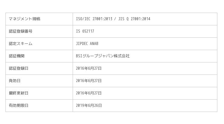 情報セキュリティマネジメントの国際認証ISO 27001を取得