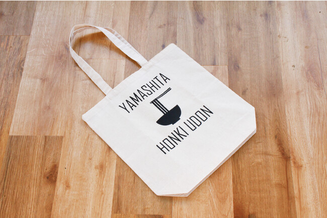 「山下本気うどん 渋谷並木橋」または「山下本気うどん 渋谷道玄坂」にご来店いただいた方限定で、周年祭限定の山下本気うどんロゴ入りトートバックをプレゼントいたします。