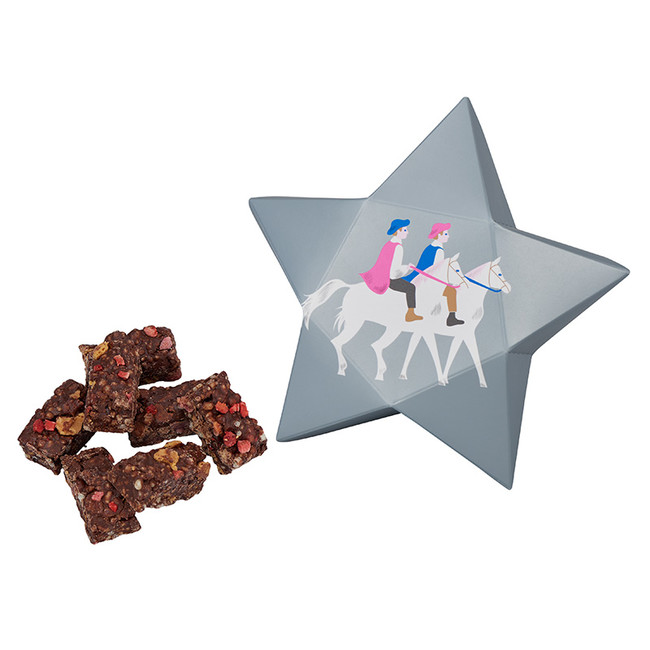 かわいい星型パッケージのチョコストロベリークランチが入っているのは、オンラインショップでお取り扱いの「タルティンミックス丸缶」だけ。特別ギフトにぜひご利用ください。