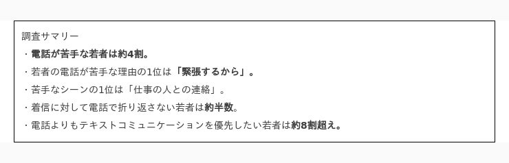 電話よりもテキストコミュニケーションを優先したい若者は約8割という結果がわかりました。30代以降は、6割と世代間でギャップがあるという結果も明らかになりました。電話が苦手な理由からも、若者は自分の時間で考えられるテキストコミュニケーションを好む傾向があります。