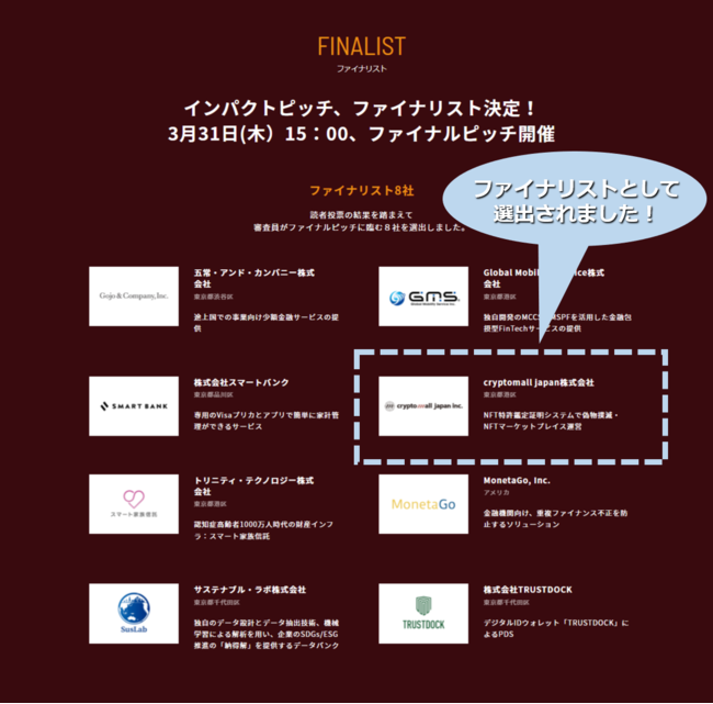 (エ) cryptomall japan株式会社 ← ★ ファイナリストとして選出されました!