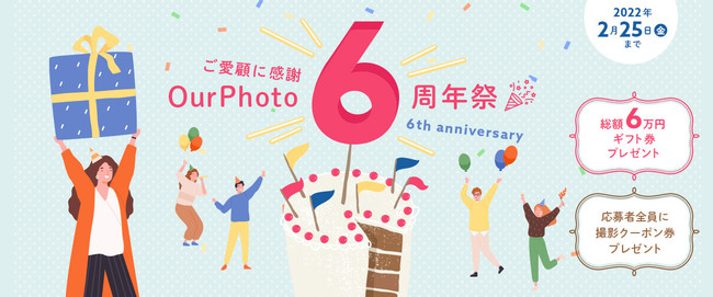 「OurPhoto」は、2021年9月にサービス開始6周年を迎えたことを記念し、 “ご愛顧に感謝!OurPhoto 6周年祭!”を、2022年1月25日(火)から2月25日(金)まで開催いたします。