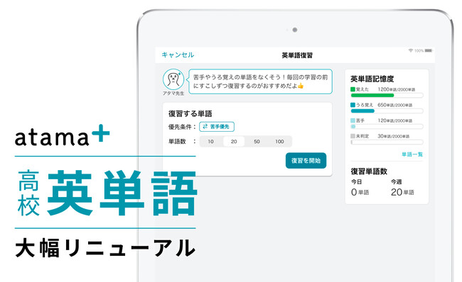 AI教材の「atama+」高校生向けの英単語学習機能を大幅リニューアル