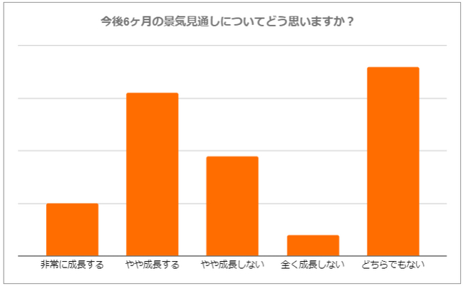 77%の回答者は、景気に対する見通しが「どちらでもない」、また「やや成長する」を選択し、消費者の大半は今後6ヶ月の景気は現状を維持する、または少し回復すると考えていることが見えます。