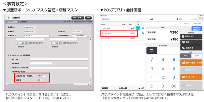 バリューデザイン社提供のクラウド型独自 Pay発行サービス「アララ キャッシュレス」でポイント利用を支払ではなく、値引き処理として設定できるようになりました。