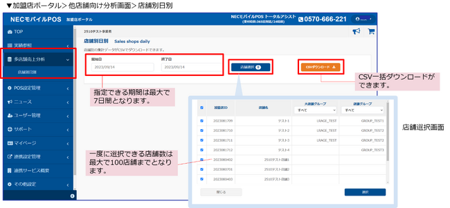 複数店舗の日別売上データを一括でダウンロードできるようになりました。