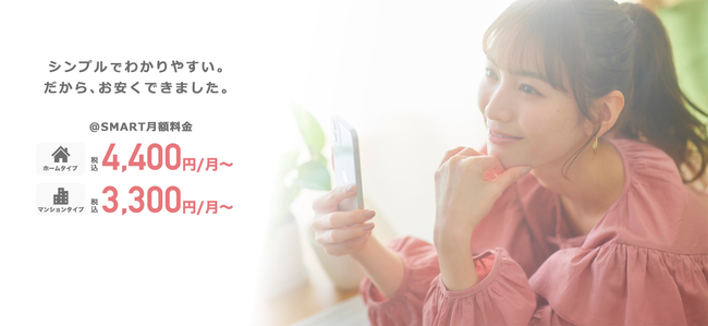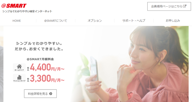 @スマート光の月額料金は、戸建てタイプ4,400円〜、マンションタイプ3,300円〜、と数ある光回線の中でもトップクラスの安さです(プロバイダ料金込み)。