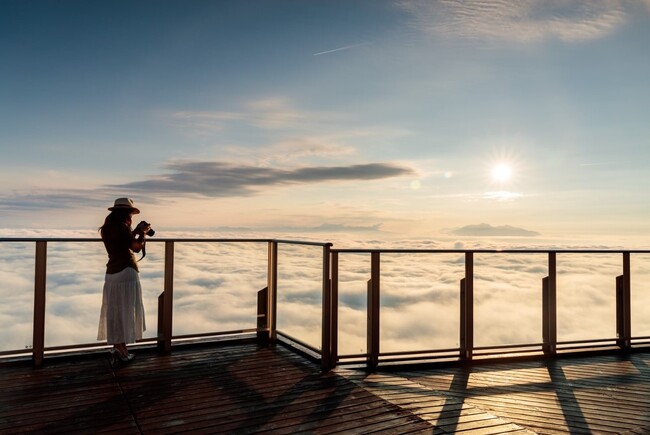 竜王マウンテンリゾート山頂エリアにあるSORA terraceからは、条件が合えば雲海やサンセットを眺めることができ、非日常空間を体験する事ができます。雲海は早朝に発生するイメージがありますが、SORA terraceでは夕方に雲海が発生する確率が最も高く、目の前の北アルプスに沈むオレンジ色に色づく夕日に照らされた雲海が見られるスポットとなります。