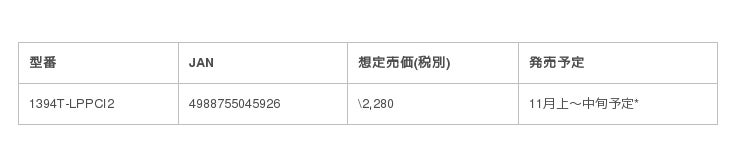 PCパーツブランド「玄人志向」から、USB3.0搭載インターフェースボード「USB3.0RA-P4-PCIE」と、IEEE1394搭載インターフェースボード「1394T-LPPCI2」を発売いたします。