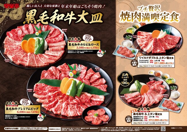 たっぷり上質な黒毛和牛や上タン塩の焼肉で、年末年始の大切な時間を華やかに飾る毎年恒例!安楽亭の年末年始限定メニューが12月29日から販売開始