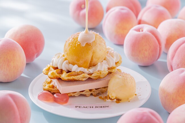 ランジェリーやボディケア商品が人気のピーチ・ジョンとコラボレーションし、優しい甘さとジューシーなまるごとピーチが夏気分を最高に盛り上げてくれる「ピーチメルバクロッフル」を7月1日より販売します。
