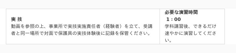 ※実技は、事業所において関連設備、道具をご準備の上、「実技実施責任者(経験者)」を立て、