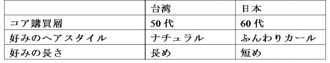 <台湾(アジア)と日本のウィッグに対するニーズの違い>