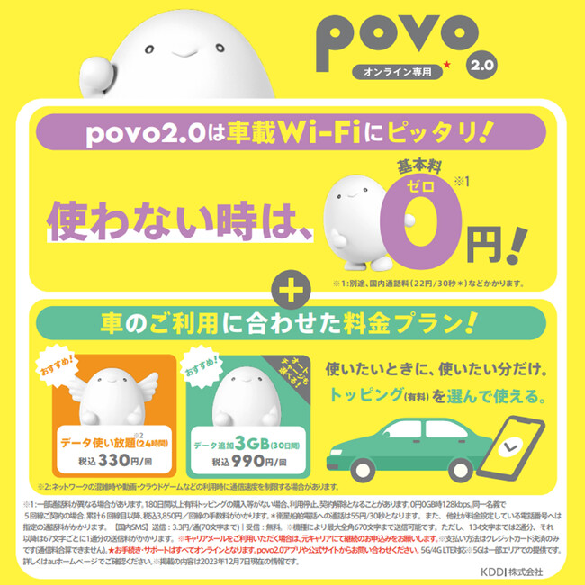 ★povo2.0は車載Wi-Fiにピッタリ!また、車のご利用に合わせた料金プランをご用意!