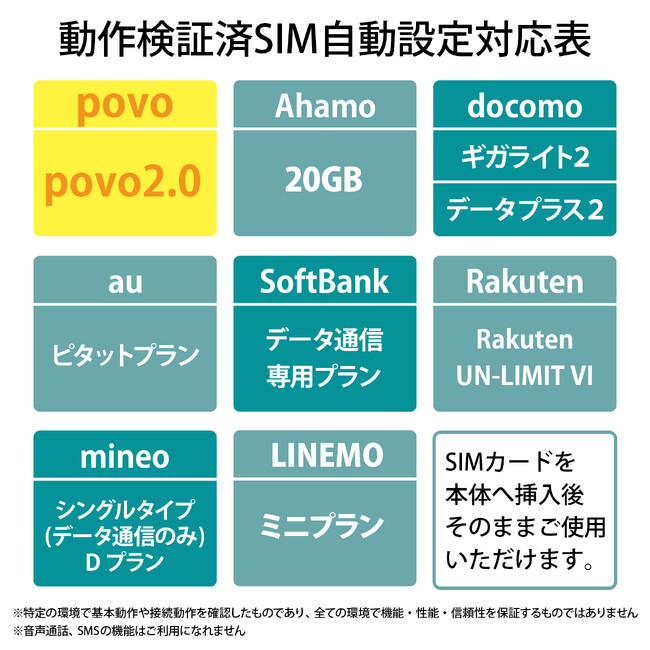 ★AN-S092Pとpovo2.0はSIM自動設定できるので相性抜群!