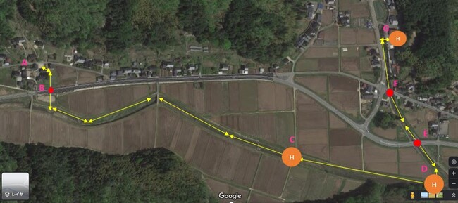 飛行ルート:1.谷区公民館広場から糸乗建設