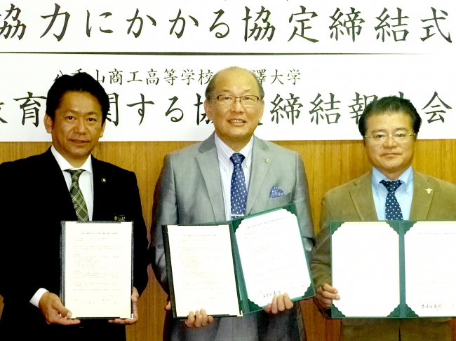 本協定の締結式は、2月20日に石垣市役所にて行い、麗澤大学の中山理学長、山川和彦教授、石垣市の中山義隆市長が出席しました。なお、既に協定を締結していた沖縄県立八重山商工高等学校との連携教育についても発表を行い、八重山商工高等学校の真栄田義功校長も出席しました。八重山商工高等学校は、石垣市の豊富な資源を生かした「観光」を支える人材の育成に努め、麗澤大学もまた、「観光」や「ホスピタリティ」に関する学びの充実をめざしています。本協定を通して、大学による高校への出張講義に関する連携や、高校の国際理解教育に関する連携を図り、双方の観光人材育成の向上に努めます。