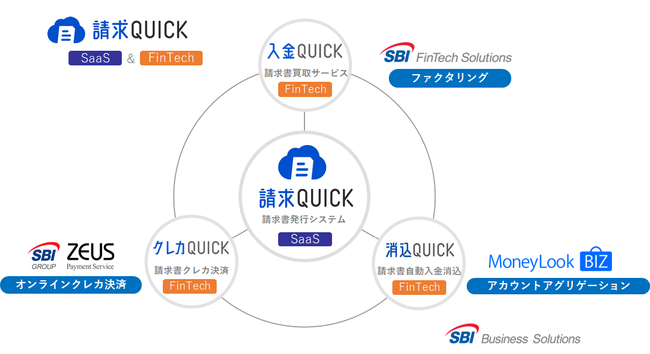 【SaaS & FinTechで構成する「請求QUICK」の概要図】