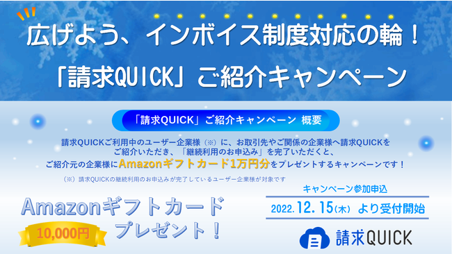 広げよう、インボイス制度対応の輪!「請求QUICK」のご紹介でAmazonギフトカードがもらえる「ご紹介キャンペーン」を開始