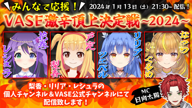 バーチャルライバーグループVASE「激辛頂上決定戦〜2024〜」が1月13日(土)21時半に開催!