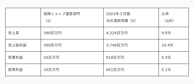 注)保険ショップ運営部門(a)の経営成績(2023年2月期実績)については、事業部門間での売上計上・コスト配分等の精査が必要であること等を理由として、セブン・フィナンシャルサービスにて信頼性の高い情報を有していない旨、同社より説明を受けております。