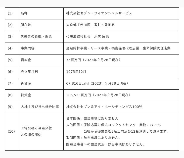 株式会社セブン・フィナンシャルサービス運営「セブン保険ショップ」の事業譲受けに関する基本合意書締結のお知らせ