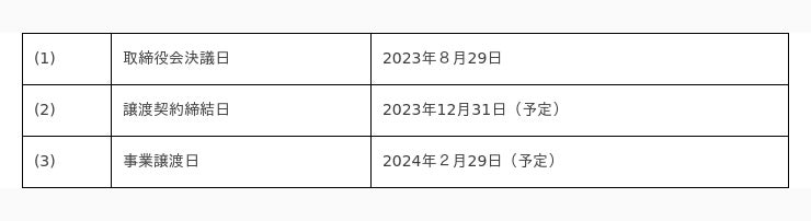 本基本合意の主な内容は次のとおりです。現在検討中の事項につきましては、最終的な合意が図られ、譲渡契約締結に至った段階で開示する予定です。