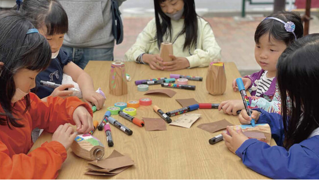 木や紙など自然の素材を使ったワークショップを開催します。自分たちでつくり上げることで、モノに愛着を持ち永く使うことの大切さや、使用する素材を通して環境や自然のことを学んでもらいます。