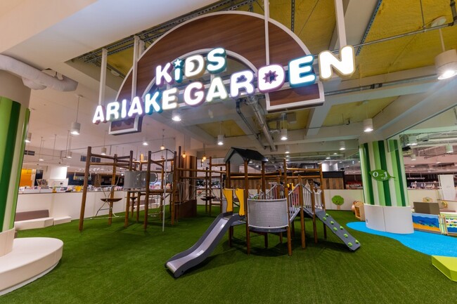 有明ガーデンは、約200店舗の商業施設、ホテル、天然温泉、劇場型ホール、劇団四季専用劇場、総戸数約1,500戸のトリプルタワーマンションなどで構成する大型複合施設です。30店舗以上のキッズ関連商品・サービスが揃うフロアや、約300平方メートル の屋内キッズスペース、アニメーションと噴水ショーが楽しめる屋上テラスなど、子育て世代に寄り添う施設を目指しています。