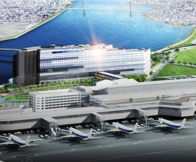 羽田エアポートガーデンは、全1,717室のエアポートホテル、展望天然温泉、イベントホール・会議室、商業施設、バスターミナルで構成される、羽田空港第3ターミナル直結の大型複合施設です。