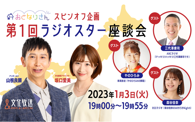 文化放送は、平日ワイド番組『おとなりさん』(平日午前8時00分〜11時00分)内で放送している人気コーナーのスピンオフ特番『第1回ラジオスター座談会』を2023年1月3日(火)午後7時00分より放送します。