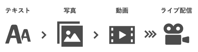 テキスト・静止画・動画とさまざまな表現が取り入れられ、日々進化を続けるマーケティング手法。コロナ禍によるオンラインコミュニケーションの加速によってさらに、「ライブ配信」が加わりました。「ライブ配信=個人での配信」という用途から、商品紹介・社内イベント・ウェビナー・採用など多くのシーンでの活用が広まっています。