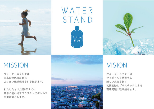 ウォータースタンドは、2020年2月にビジョンとミッションを策定し、暮らしに寄り添う製品の提供と環境負荷軽減に貢献する事業経営を通じ、脱炭素社会の実現に向けてSDGs経営を推進しています。