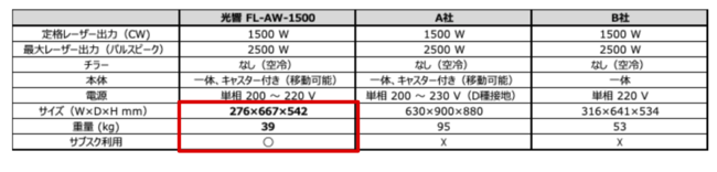当社製品を含めたネット検索が可能なレーザー溶接機製品を以下条件で比較した結果に基づき、業界最軽量という表記を使用(当社調べ、2022年8月時点)